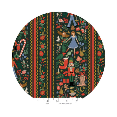Holly Jolly Nutcracker in Evergreen Canvas with Gold Metallic - Holiday Classics IV by Rifle Paper Co. - Cotton + Steel Fabrics