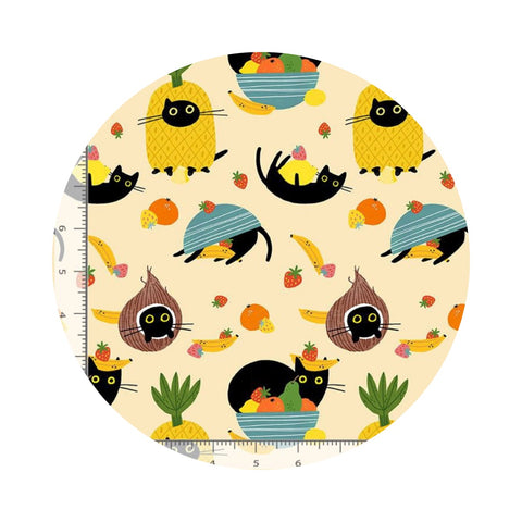 Cats in the Furruit Bowl from the Furruit Cocktail Collection by LeezaWorks for Dear Stella Fabrics.