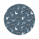 Whales on Dark Ocean with Pearl from the Small Things Polar Animals Collection by Lewis & Irene Fabrics.